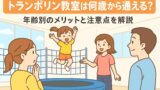 トランポリンは子ども向けの教室も多いため、大人だけのクラスや初心者向けのクラスがあるかどうかで安心感が大きく変わります。